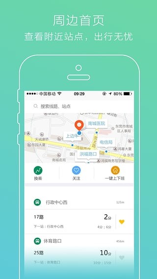 实用功能:常用线路收藏、上下车温馨提示、一键导航附近站点