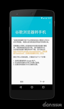 1. 安装 Android 应用程序“谷歌浏览器转手机”,然后完成简单的设置过程。