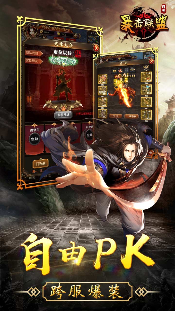 游戏暴击画面绚丽,战斗可挂机,即使离线也能获得经验和金钱收益。玩家轻松挂机的同时还可以通过参与击杀boss获得神装,也可以通过PK击败其他玩家体验爆装备的快感。让玩家能够配对携手一起进行游戏,并获得巨额战斗力加成。