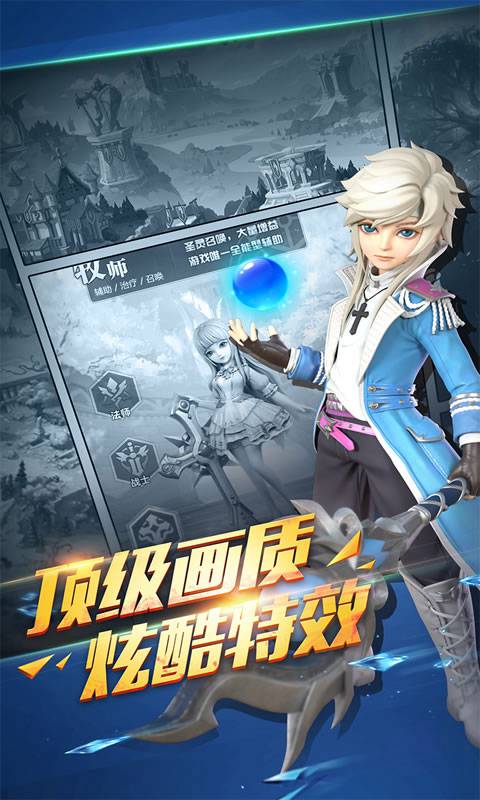 是一款大型3D次时代魔幻MMO手机游戏。大气磅礴的游戏场景,唯美细致的人物模型,华丽无比的视觉表现,让玩家尽享视觉盛宴。游戏以寻找回失落的圣器为主题,贯彻多条剧情任务,端游般的世界观将整个游戏世界表现得淋漓尽致。