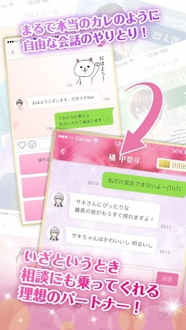 是一款恋爱模拟类App,玩家可以在决定理想的男友之后与他们对话。