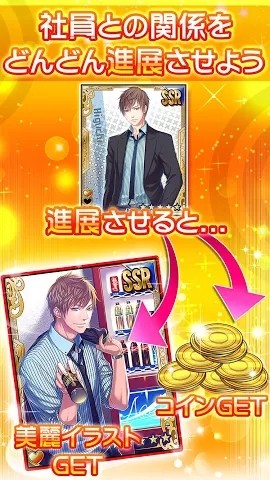 是一款收集类游戏,游戏中玩家将扮演一名新手社长,与手下社员共同努力发展公司,加深羁绊还可以和社员谈恋爱喔!由性格迥异的优良青年和成熟大叔组成的70名帅哥社员,一起努力成为业界第一吧!