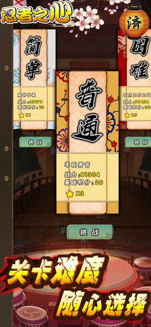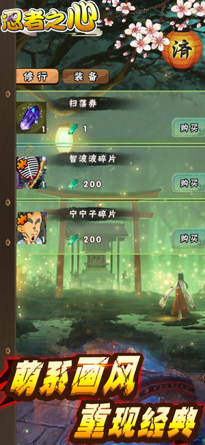 忍者之心是一款画风唯美的策略类卡牌游戏,游戏内有丰富的人气动画角色以供玩家体验,游戏内采用高清画面,画面唯美,相信一定能给玩家带来非常好的感官体验。