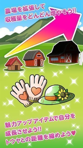 有恋 〜农场篇〜是发生在经营农场工作的女主人公身上的故事。继承父亲工作的主人公与トウヤ相遇后、决心成为有魅力的女孩子。经营店面,成长魅力,这样的模拟经营恋爱游戏。游戏操作简单,通过点收获作物。随着营业额得到工资。用工资购买物品提升魅力,进行剧情。剧情里会出现选项分支,并会根据选择有不同的剧情。最终和トウヤ恋爱的结果会是什么样??你能完成9种类型吗?