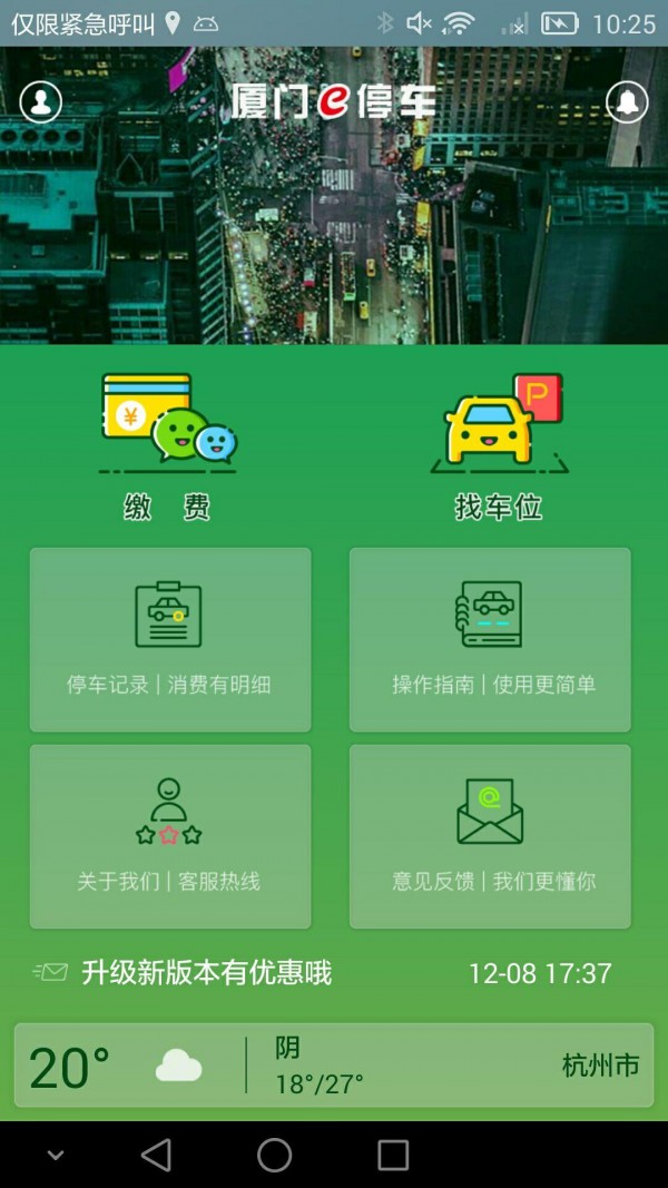 厦门e停车APP是应用于厦门海沧道路及停车场停车缴费中,为有车用户在海沧停车提供诱导、支付等功能,能快速找到车位并可以通过APP支付相应费用,可缓解道路拥堵及找零所带来的困扰,极大的便利了市民车主停车缴费。