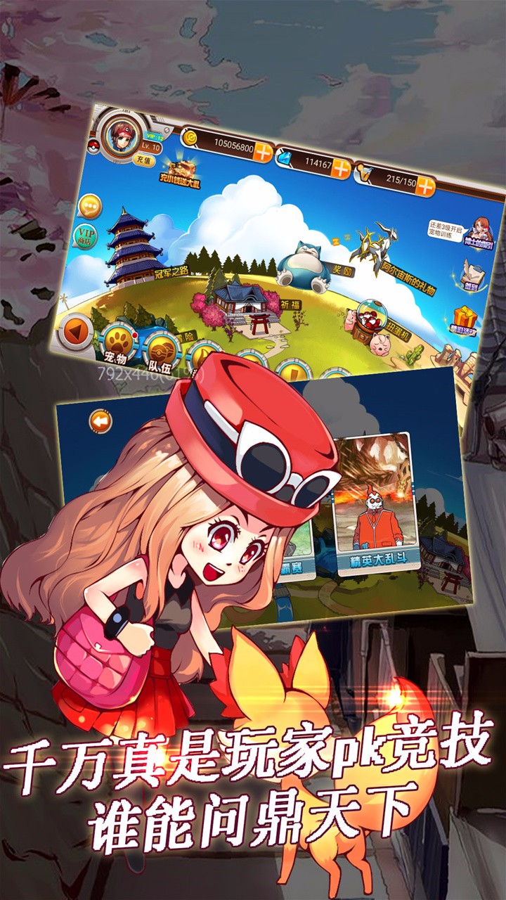 最后一个建议:不要全练一个属性的,要均衡,鄙人一个皮卡丘一个雷电球就够得受了,装备、升级等等各种烦,而且游戏是有属性克制的,所以还是均衡点吧!