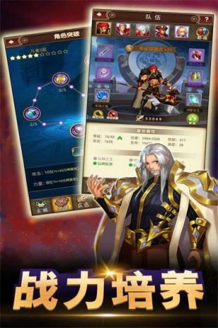 5、此外,每位主角英雄也有自己的突破功能。在探险挂机中,会得到大量的锻造材料,这些材料可在炼神台里锻造成突破所需的元神。每种元神分别代表知识、攻击、力量、防御等属性;