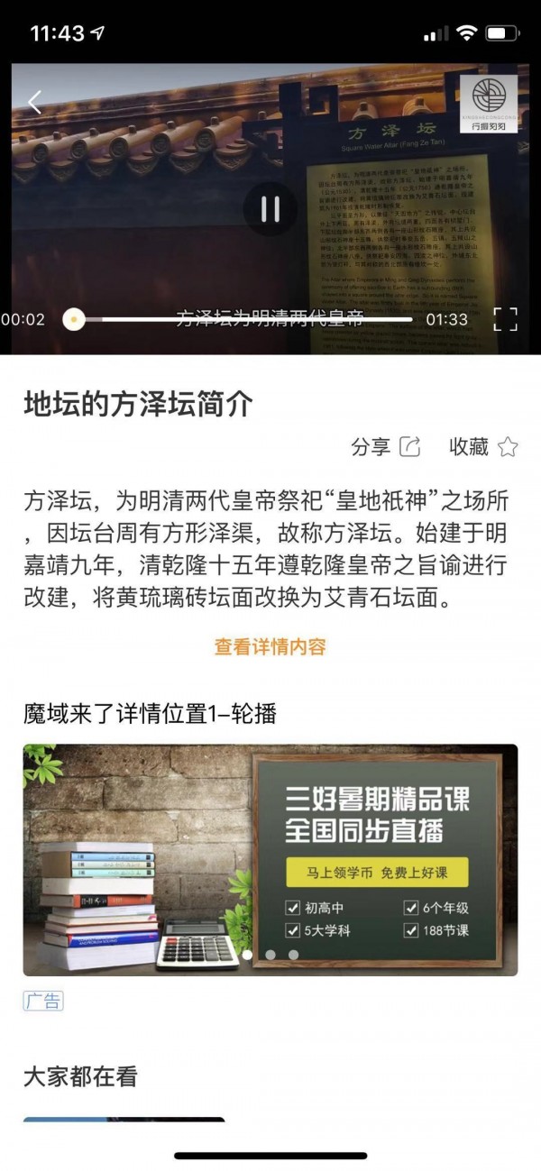 (1)详情页展示视频播放区域和文本内容区域,“大家都在看”相关推荐模块。