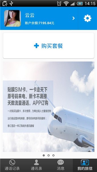 您是否被高昂的国际漫游电话费困扰?来用旅信吧!像订酒店、机票一样,出国前预订境外通信服务。*尽情享用低廉的资费,带着网络去旅行**一键拨号,IP电话打回国**个性化按天订购,随时续订**关于旅信*国际漫游资费太贵,小心翼翼不敢畅用;境外临时买手机卡,费时费力耽误行程还价格贵;换临时境外电话卡,担心漏接重要电话…出国旅行的您也在遭遇这些问题吗?旅信为您提供便利的通信套餐,使您身在海外旅行,通信亦如在国内!随时上网、随时分享,随时畅聊,更有原号码来电通知服务免去您原号码来电漏接的烦恼。旅信将不断推出新的功能,完善您的用户体验,完美您的出境旅程。