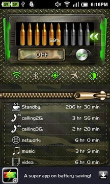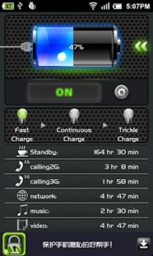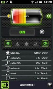 *快速管理WIFI、蓝牙、GPS定位、背景灯、声音模式、同步,有效地帮助省电。