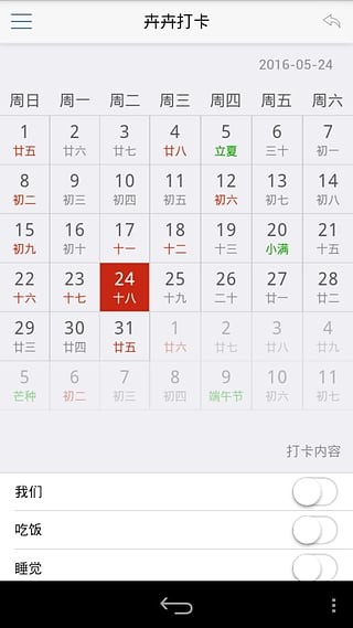卉卉打卡app是一款小巧简单的打卡软件,可以用来记录你的日常事项有没有做完,虽然功能不多,但每个功能都非常贴近现实,是我喜欢的风格。