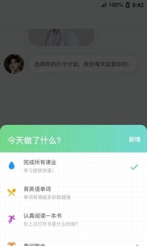 爱豆打卡app是为00后定制的全新交互式学习工具,在爱豆打卡,你可以设置你*喜欢的虚拟角色,监督你每天学习,跑步,健身。同时,他还能每天和你聊天,提醒你完成任务,像虚拟的男友女友一样陪伴你。