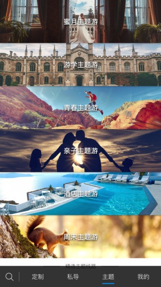 【主题出游】——家庭出游去哪儿玩?蜜月度假去哪儿玩?当季最佳是哪里?主题出游,让出游不再盲目~同时,还有更多特别主题的行程,潜水,游学,狩猎,NBA…只有你想不到,没有我们做不到哟!
