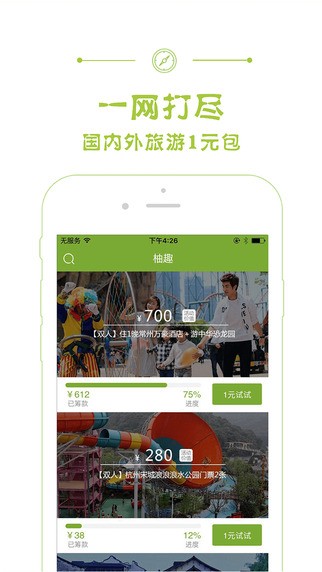 柚趣旅行app是一款功能非常全面的旅行必备软件。柚趣app上有多种旅游产品,通过众筹的方式让每一个人都有可能享受到一元钱的旅行,人人参与人人都有份,非常公平!
