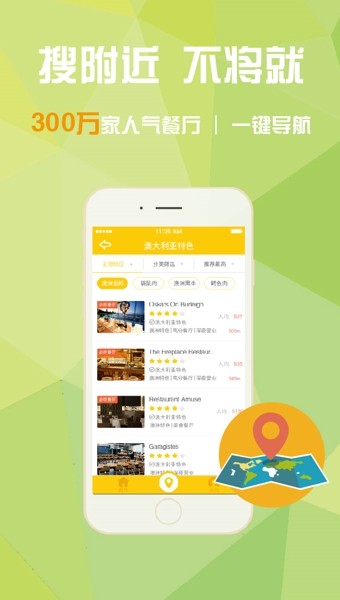 当然,在“旅行现场”大家最常用的就是“附近”的功能了,让您分分钟享受到身边最正宗的“外国菜”