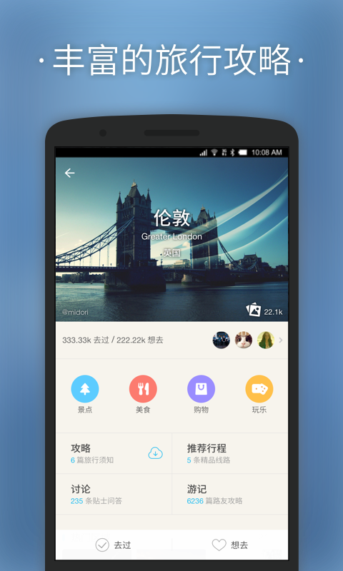 app是一款综合旅游应用,app为用户提供综合旅游攻略,让用户的旅游更简单,同时还能自己写游记分享给其他用户,一起享受旅游的乐趣。