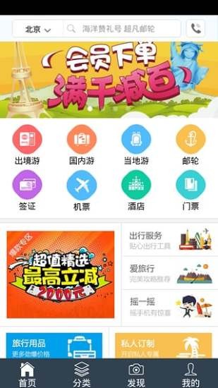 app承包了包括旅游套餐、机票、住房、吃、地图等旅游必备的所有方面,给你提供最优惠、最懂你的旅游出行服务,同时还能在上分享你的旅游游记,记住这美好的时刻。