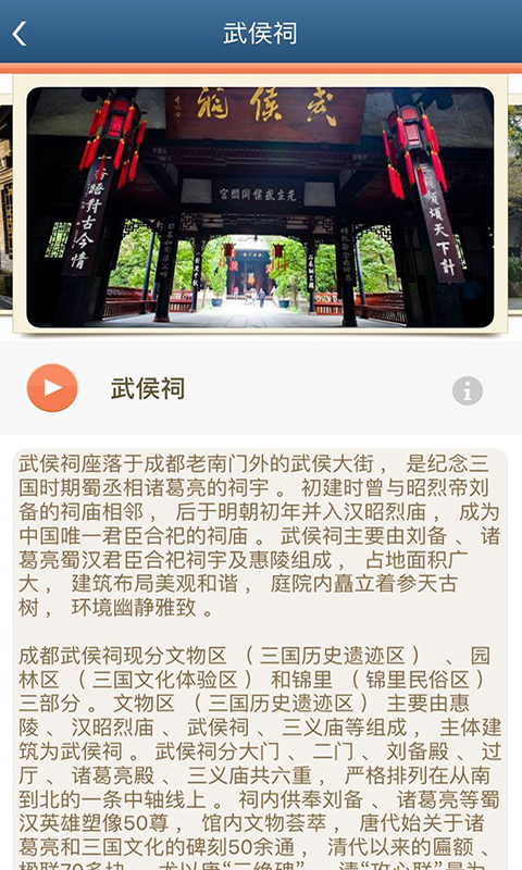 不需要流量,手机自动定位您的位置,自动语音播报离您最近的一个景点的相关背景和典故,就像一个贴身的小导游。