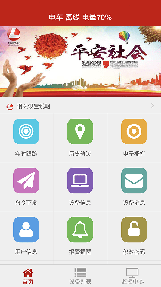 联讯安防GPS是一款用于显示人员,车辆实时位置及轨迹的APP,同时支持历史轨迹回放,设备报警信息查询,以及对设备运行参数的下发等操作。
