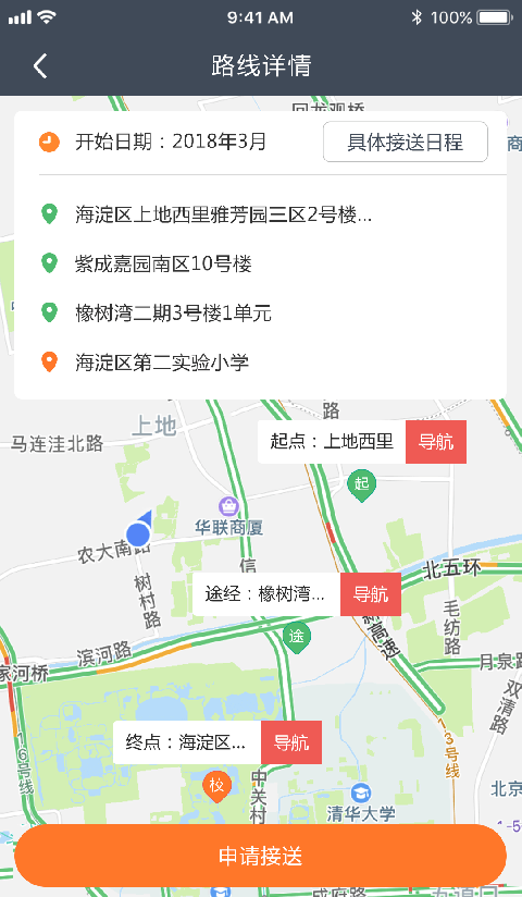 4.稳定路线:每天上午和下午固定时间固定接送路线,无需时时为找路而焦虑