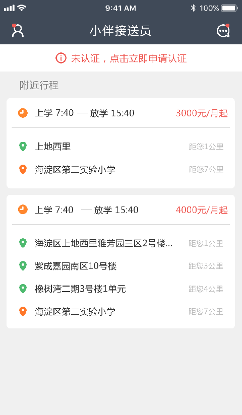 小伴接送员app是一款专业接送孩子上下学的软件平台。小伴接送员app每天上午和下午固定时间固定接送路线,无需时时为找路而焦虑。