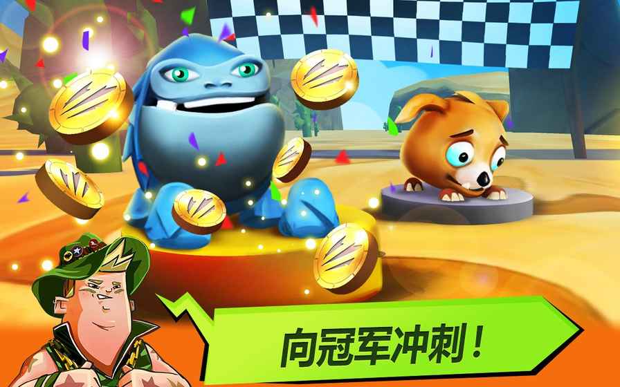 升级你的动物!收集金币和能量宝石来升级你的动物,成为赛道上最快速、最强大的赛车手!