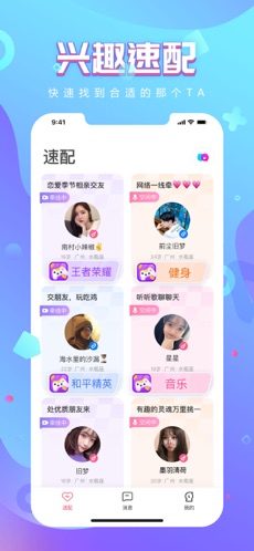 2、有多种特色的社交模式,随机根据你设置的标签来匹配他人,三分钟内聊得来,继续聊下去;