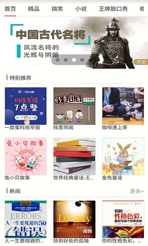 高清的音质、清爽的界面、丰富的有声阅读资源,上万部有声小说内容实时更新,汇聚了当下芈月传奇、盗墓笔记、鬼吹灯、左耳、斗破苍穹、单田芳评书全集、逻辑思维、百家讲坛、郭德纲相声全集、张震讲鬼故事、赵本山相声全集......等各类型有声听书资源。让您上下班路上不寂寞,堵车也不再无聊,更不要说一个人的夜,一路听书,一路畅通!