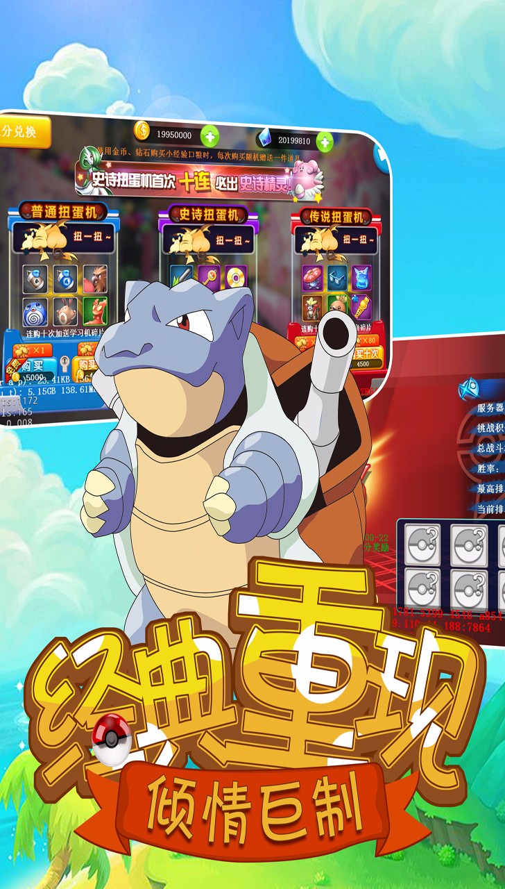 超经典小精灵回归,原汁原味重现原著技能,还有特色原创技能、传说精灵专属酷炫技能,根据属性克制BOSS,多种战术策略搭配,让我们一起打倒“火箭队”