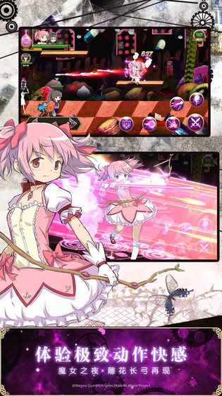 结界战、救援战,轮回的战场,魔女的世界......各个副本,等你来战!鹿目圆的蔷薇花开弓、晓美焰的金属盾牌和RPG-7、美树沙耶香的刀等等,游戏完美还原了每位魔法少女战斗动作,玩家指尖操控魔法少女,获得非凡的战斗快感。