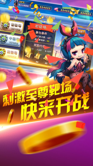 房间中玩家互相竞争,你追我赶,争夺霸主的气氛无比热烈,还有各种炮台属性任您升级体验。游戏还有靶场和休闲模块,供不同玩家来娱乐,获取更多的乐趣和奖励。还有各种送福利的活动,在线大奖,体验大奖,精彩宝箱放送,人人有份,更有幸运大奖降临,下一个领奖的就是您!