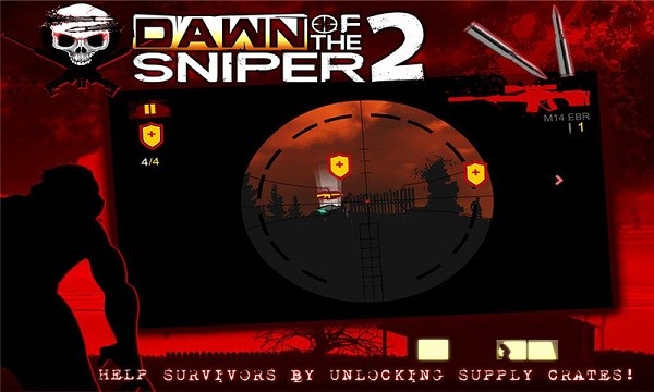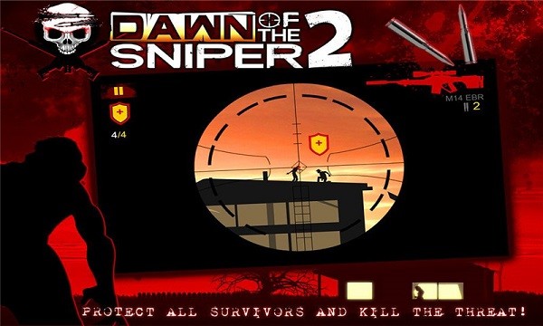 《黎明狙击手2》(Dawn Of The Sniper 2)是一款让你瞬间爆发战斗力的枪战类射击游戏。游戏的整体风格采用了鲜红幽深特效,让人看起来有点血腥的感觉。游戏讲述了生化危机爆发,病毒扩散,丧尸横行。而你需要做的就是隐藏在草丛中狙杀僵尸,并且保护剩下的幸存者。在黎明到来的时刻,幸存者的生命就交给你了!