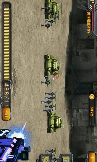 3、游戏中拥有机枪、重炮两大类,共计数十种枪械,每种武器都有不同的特性。玩家还可以更新武器来提高其杀伤力。