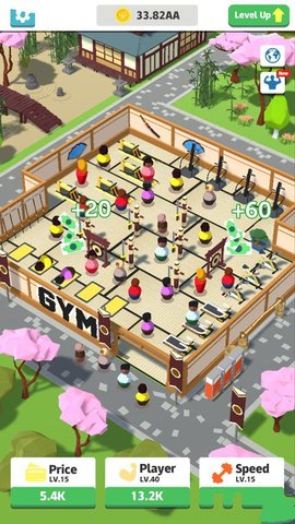 卡通风格的模拟经营游戏,游戏中玩家将经营一家健身房,不断的升级提高你的健身房的空间。