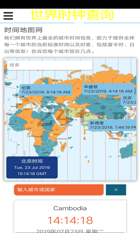 世界时间:查询世界各地的当前时间,可按城市、国家、地区查询