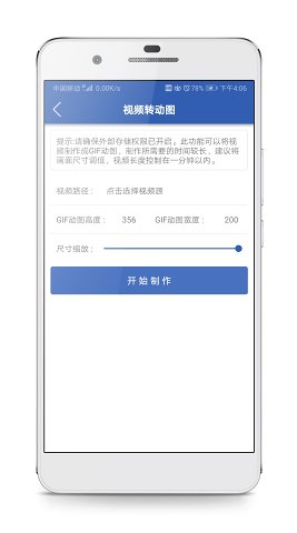 请确保外部存储权限已开启。此功能可以将视频制作成GIF动图,制作所需要的时间较长,建议将画面尺寸调低,视频长度控制在一分钟以内。