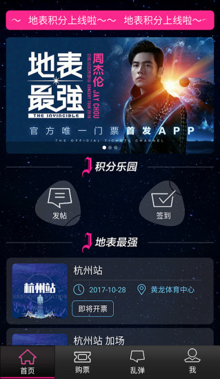 地表最强2019app是一款专为周杰伦地表最强演唱会打造的购票服务软件,周杰伦人气可以说一直非常地高,每年都在各地开办演唱会。地表最强2019app通过买票扣积分的制度有效避免了黄牛等情况的存在,更有商城、社区等服务提供,感兴趣的朋友赶紧下载吧。