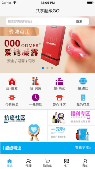 共享超级GO,一家为您量身打造的社交电商系统服务平台。用户通过在商城上购买欧迪玛正品和全球好货,共享超级GO用户也可以通过商城申请和升级代理,让用户用更快捷的方式买到最优质的商品,体会更多的实惠和乐趣。