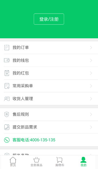 2.美菜的购物车、购买历史、个人中心心等功能需要在登陆状态下才能使用,在进行上述操作前,请先确认登陆成功。