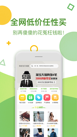 特色4:9元包邮与大额优惠券栏目,可以让您买到淘宝、天猫超值低价商品,特别是大额优惠券栏目,用了优惠券以后的商品低至1折。