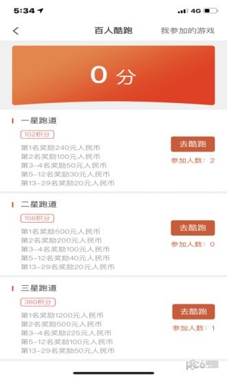5.消费获抽奖积分,参与酷跑有机会中现金大奖