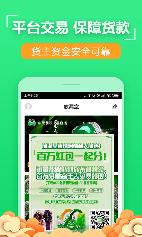 app是一个提供缅甸翡翠平价网购的平台,平台集买卖、分享、交流、科普、拍卖于一身。在app不仅可以找到您心目中合适的翡翠还能够学到专业翡翠知识。,不对庄,只放漏。