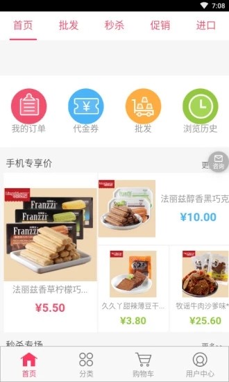 app是一款蛮不错的零食商城手机app,app提供了各种各样的零食商品,app有辣条类的、膨化类的、干果类的、饼干类的,种类多多多到你吃不完哦。