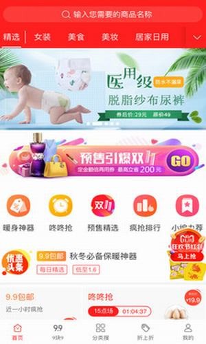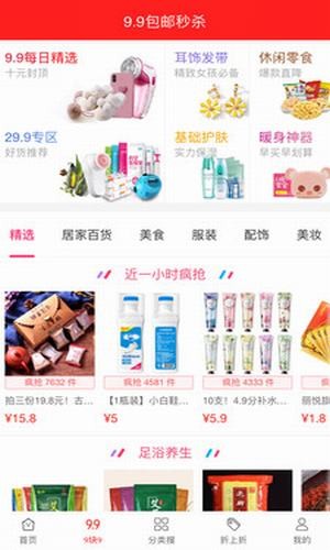 4、精选九块九包邮:每天精选超值9块9包邮商品,9块9包邮,全国轻松买。