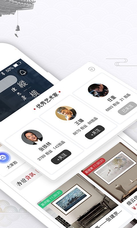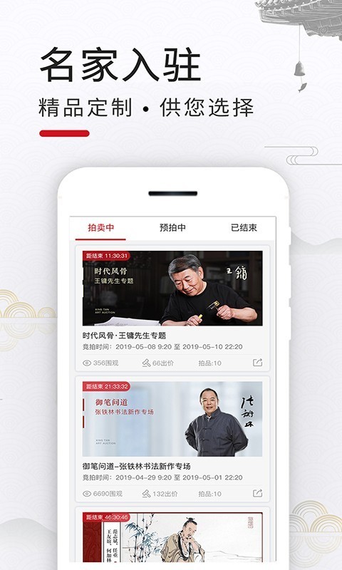 是一个联合了书法作品合集和书画拍卖为一体的软件,上面有种类各异的书画拍品,更有专场拍卖和私人订制资讯,优秀艺术家在线指导。