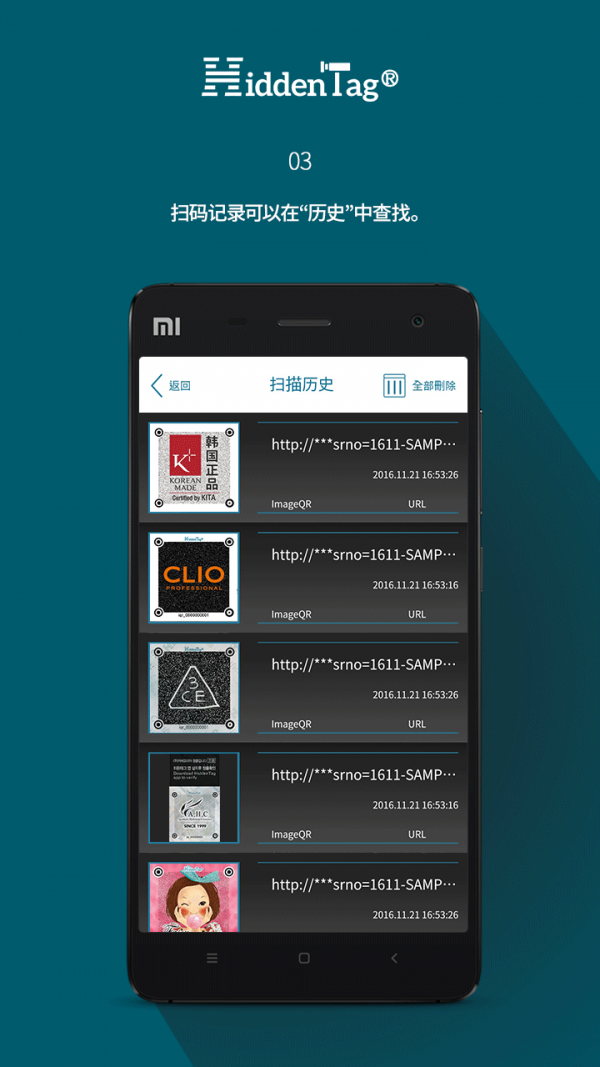 与原有的二维码不同,灵活运用水印技术,开发了独有的可以识别HiddenTag代码(imageQR)的APP。