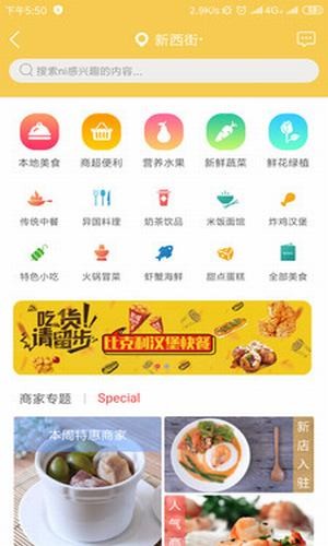 4.用户可以在线搜索附近的商家门店,查看最新的优惠购物互动信息。