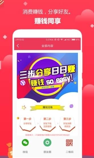 app是一款消费赚钱的客户端应用,手机版上有上千件优质商品,将你随手发现的好商品分享给好友既可,购买就能赚钱,并且推荐的越多享受的权益越多。