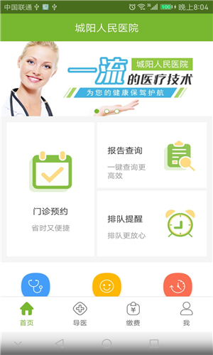 城阳人民医院是一款健康医疗软件,用户可在线预约挂号,无须去医院排队等候。可查看医院最新信息资讯,及个人的检验报告,在线支付等。