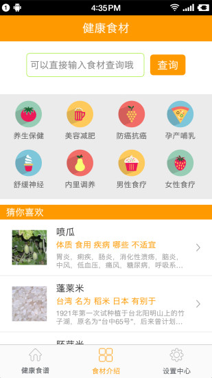 健康食谱为大家提供大量的养生食谱,四季食疗资讯,避免在日常生活的饮食中误区 。更为每个用户提供免费量身定制养生食谱功能,每日为您推送关注的领域的养生食谱,让您保持生命健康活力,拥有幸福的健康生活。